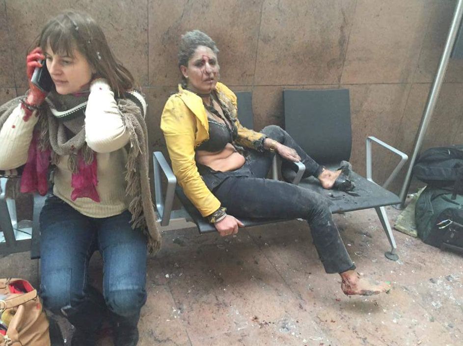 Τραυματίας στο αεροδρόμιο των Βρυξελλών λίγο μετά την τρομοκρατική επίθεση της 22ας Μαρτίου 2016.