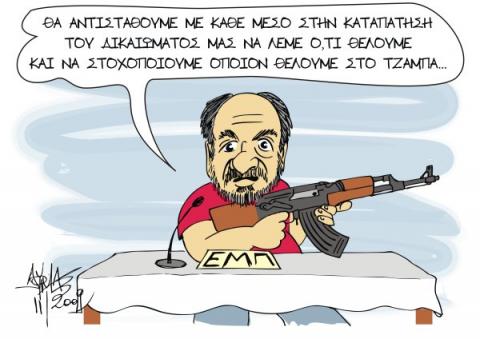 * Σίγουρα δεν θ' αντέξει μέχρι τέλους να υπερασπίζεται τους μοναδικούς στον κόσμο επαναστάτες με κρατική χορηγία. Κρίμα, πάντως, γιατί ο κ. Σπαθής προσπάθησε πολύ να εξαργυρώσει για λογαριασμό του ΣΥΡΙΖΑ τα Δεκεμβριανά του 2009. Με κάθε ευκαιρία γκρινιάζει ότι «δεν έχουμε βρει τον συνδετικό κρίκο του νέου πολιτικού υποκειμένου».