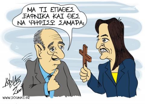 * Για περάστε, για περάστε, εδώ οι καλές θέσεις στο Δημόσιο! Ριγμένοι είναι βέβαια οι μετανάστες. Μόλις όμως ελληνοποιηθούν, η μητέρα πατρίς θα φροντίσει και γι' αυτούς. Μια θεσούλα στο Δημόσιο τους περιμένει... Άλλωστε, υπάρχουν πολλές δουλειές στο Δημόσιο που δεν τις κάνουν οι Έλληνες. Το ποιες δουλειές κάνουν είναι βέβαια κι αυτό ένα εύλογο ερώτημα.