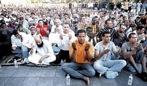 * Δημόσια προσευχή μουσουλμάνων στην πλατεία Κοτζιά, μπροστά από το δημαρχιακό μέγαρο. Ευτυχώς, ελάχιστοι εξ αυτών ψηφίζουν, οπότε γλυτώσαμε το θέαμα του Κακλαμάνη να εμφανίζεται ξυπόλητος και με κελεμπία να φωνάζει «Αλλάχ Ακμπάρ» από τον εξώστη του δημαρχείου.