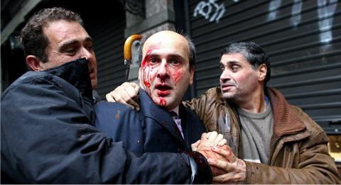 * Γιατί φωνάζετε; Γιατί τα σπάτε; Η εντολή είναι νωπή αυτή τη φορά. Η εντολή ήταν Γιώργο προχώρα σε θέλει όλη η χώρα. Και όχι μόνον. Κανείς δεν σας φταίει. Ούτε κι ο Χατζηδάκης, ούτε καν ο Παπανδρέου δεν σας φταίει. Ούτε και ο προκάτοχός του.