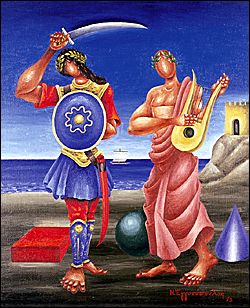 Η αναζήτηση της Ελληνικότητας, η αναζήτηση μιας ολοκληρωμένης ταυτότητας του σύγχρονου Ελληνισμού μέσα από το βάθος αιώνων, γίνεται στον ίδιο χρόνο που οι ηγεσίες του παραδομένες στον δανεισμό - διαρκές ιδίωμα του πολιτικού κόσμου - αδυνατούσαν να διαμορφώσουν μια συνειδητή κοινότητα αλλά αρκούνται σε μεγάλα λόγια και επιδίωκαν με κάθε τρόπο να ταυτίσουν την Ελλάδα με τα συμφέροντα συνασπισμών ή κρατών... Πολύ συχνά στην ίδια λογική βρέθηκε και ο «πνευματικός» κόσμος της εποχής.