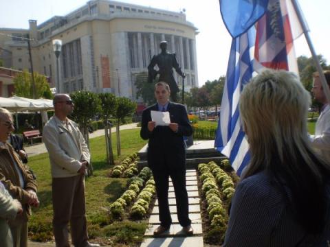 Στεφάνια κατατέθηκαν από τον πρόεδρο της Δημοτικής Επιτροπής ΛΑ.Ο.Σ. Θεσσαλονίκης Σταύρο Αφεντούλη και τον υπεύθυνο Νεολαίας της Δημοτικής Επιτροπής ΛΑ.Ο.Σ. Θεσσαλονίκης Θανάση Μανουσάκη.