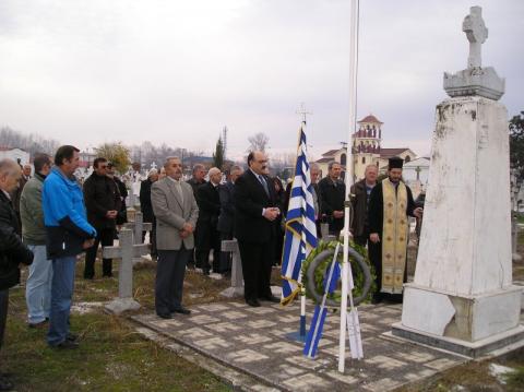 Αρχικά, έγινε μία επιμνημόσυνη δέηση στο στρατιωτικό νεκροταφείο όπου και οι τάφοι και το μνημείο της μάχης και στην συνέχεια επετειακή ομιλία από τον Πρόεδρο της Νομαρχιακής Επιτροπής του ΛΑ.Ο.Σ. και του Ιατρικού Συλλόγου Καρδίτσης Κώστα Καρδαρά με προβολή ιστορικών φωτογραφιών. Ακολουθούν τα κυριότερα σημεία της ομιλίας.