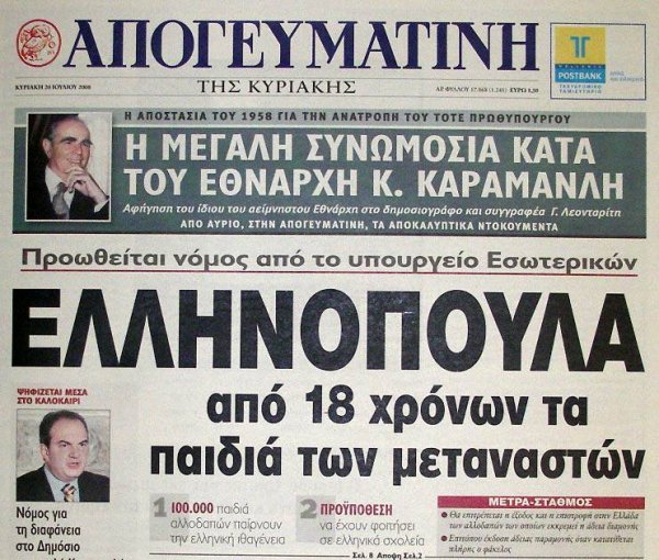 1) Ιωακειμίδου Κωνσταντίνα «Ελληνόπουλα στα 18 τα παιδιά των μεταναστών», Απογευματινή της Κυριακής 20/7/2008.