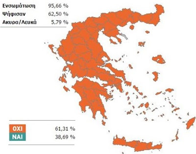 Ο ελληνικός λαός, που γνωρίζει ότι οι εκπρόσωποι του παλαιοκομματισμού οδήγησαν τα πράγματα στο αδιέξοδο, προσέθεσε αρκετούς πόντους στο ΟΧΙ με στόχο να ξεκαθαρίσει το τοπίο τόσο στην πολιτική σκηνή, όσο και στα media. Τα πρόσωπα του Κώστα Σημίτη, του Κωνσταντίνου Μητσοτάκη, του Σάκη Ρουβά, του Γιώργου Παπανδρέου και άλλων πολλών παρόμοιων φάνηκαν περισσότερο απεχθή από τις αοριστίες του Αλέξη Τσίπρα για την επόμενη ημέρα και τα αυτάρεσκα νάζια του εξασφαλισμένου (στο εξωτερικό) Γιάννη Βαρουφάκη, που θεωρεί «ανάρμοστο» να στέκεται στις ουρές των ΑΤΜ.