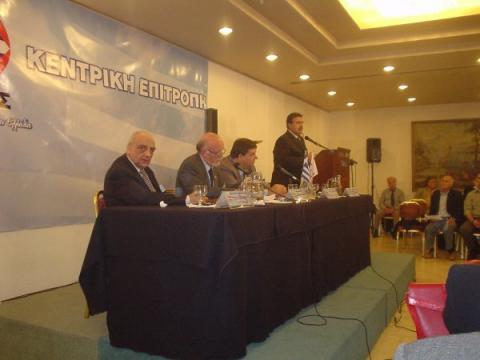 Ο πρόεδρος του ΛΑ.Ο.Σ. Γ.Καρατζαφέρης ξεκίνησε την ομιλία του καλωσορίζοντας τα 10 νέα μέλη της Κ.Ε. που προέρχονται από το ΕΛΛΗΝΙΚΟ ΜΕΤΩΠΟ, τονίζοντας ότι το πατριωτικό κίνημα σήμερα είναι ενωμένο και ικανό να αντιπαρατεθεί με τις δυνάμεις του δικομματισμού που οδηγούν σε συνεχείς υποχωρήσεις στα εθνικά θέματα και ευθύνονται για την παρατεταμένη κοινωνική κρίση.