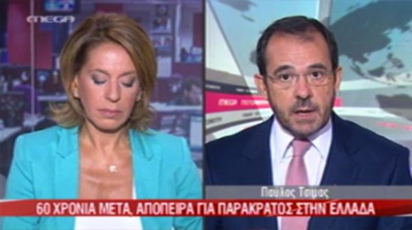 Το θέμα εδώ δεν είναι η μαύρη βία να φτάσει τα κατορθώματα της κόκκινης βίας και μετά το συζητάμε. Το θέμα είναι η απίστευτη υποκρισία των ΜΜΕ στο θέμα της πολιτικής βίας. Ο Παύλος Τσίμας στο δελτίο του Mega όταν οι της Χρυσής Αυγής έσπασαν ορισμένους πάγκους σε δυο-τρεις λαϊκές έφτασε να μιλάει για επανασύσταση του παρακράτους της Δεξιάς... Όταν τον Οκτώβρη του 2011 οι δυνάμεις του ΚΚΕ (ΠΑΜΕ-ΚΝΑΤ) ανέλαβαν το ρόλο του κράτους και προστάτευσαν το ελληνικό κοινοβούλιο από αριστερούς άλλων παρατάξεων, η στάση του βεβαίως δεν κρίθηκε ως παρακρατική από τον κ. Τσίμα.