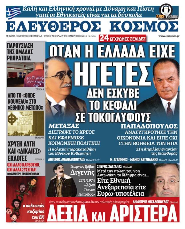 Ζητείστε τον ανανεωμένο «Ελεύθερο Κόσμο», την εφημερίδα των Ελλήνων εθνικιστών.