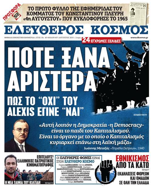 Ζητήστε στα περίπτερα όλης της Ελλάδος τον «Ελεύθερο Κόσμο», την φωνή των Ελλήνων εθνικιστών.