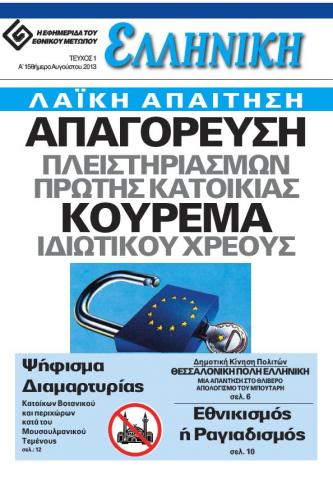 Ένα ακόμα όπλο αγώνα για συνεχή ενημέρωση της ελληνικής κοινωνίας απέκτησε το Εθνικό Μέτωπο. Η εφημερίδα «Ελληνική» μέσα στον Αύγουστο δίνει την απάντηση του Κινήματός μας απέναντι στην κρίση που κλιμακώνεται επικίνδυνα.