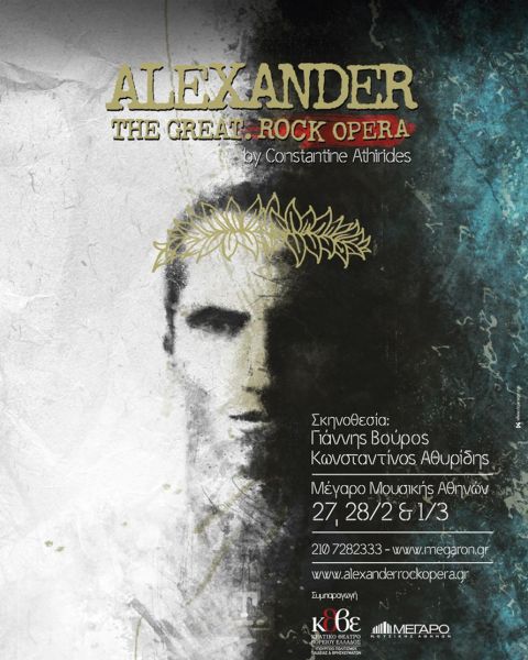 Ενάμιση χρόνο σχεδόν μετά την πρεμιέρα της στο Βασιλικό Θέατρο της Θεσσαλονίκης, η ροκ όπερα «Alexander the Great» των Κώστα Αθυρίδη και Πένυ Τέρνερ ανεβαίνει στο Μέγαρο Μουσικής Αθηνών στις 27 και 28 Φεβρουαρίου και 1 Μαρτίου. Πρόκειται για μια προσπάθεια δημιουργίας μιας διεθνούς επιτυχίας σε σκηνοθεσία του θεσσαλονικιού μουσικού Κώστα Αθυρίδη και του Γιάννη Βούρου, διευθύνοντα σύμβουλου του ΚΒΘΕ. Το έργο έχει ήδη παρουσιαστεί στο εξωτερικό και τώρα κατεβαίνει στην Αθήνα.