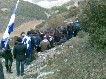 Τα μέλη της «Πρώτης Γραμμής» με πορεία έφτασαν στο χώρο του κρησφύγετου του «Σταυραετού του Μαχαιρά», όπου παρακολούθησαν μαζί με πλήθος κόσμου τη συγκλονιστική αναπαράσταση των τελευταίων στιγμών του ήρωα. Στο τέλος η ορχήστρα της Εθνικής Φρουράς παιάνισε τον Εθνικό Ύμνο, ενώ άριστη εντύπωση άφησε το τιμητικό της άγημα. Τα συνθήματα που δόνησαν τον τόπο θυσίας του Γρηγόρη Αυξεντίου ήταν: «ΕΟΚΑ ξανά στης Κύπρου τα βουνά», «Ζει-ζει ο Αυξεντίου ζει, στη Μόρφου, στην Κερύνεια και μας καθοδηγεί», «Ελλάς-Κύπρος-Ένωσις», ενώ όταν πολιτικοί από τα δύο μεγαλύτερα κόμματα της Μεγαλονήσου κατέθεταν στεφάνια, ακούστηκαν αντι-ομοσπονδιακά συνθήματα.