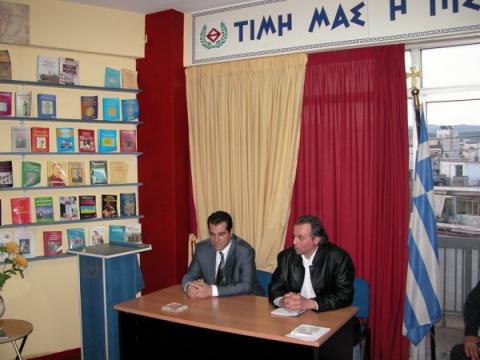 Πραγματοποιήθηκε την Δευτέρα 7 Απριλίου η ομιλία του βουλευτή του ΛΑ.Ο.Σ. Θάνου Πλεύρη στον Πολιτιστικό Σύλλογο «Θερμοπύλες» στο Περιστέρι. Ο κ. Πλεύρης, πριν αναφερθεί στο κύριο θέμα της που αφορούσε την λαθρομετανάστευση, ανέλυσε τις θέσεις του ΛΑ.Ο.Σ. για το Μακεδονικό ζήτημα και τα επιχειρήματα για την μη χρήση της λέξης «Μακεδονίας» στο όνομα των Σκοπίων, καταχειροκροτούμενος από τους ακροατές. Ακολούθησε η αναφορά του στην λαθρομετανάστευση, τα μέτρα που πρέπει να λάβουμε και τους κινδύνους που εγκυμονούν για το Έθνος μας. Ακολούθησε ζωηρός διάλογος με πλήθος ερωτήσεων και θέσεων που διήρκησε αρκετή ώρα.