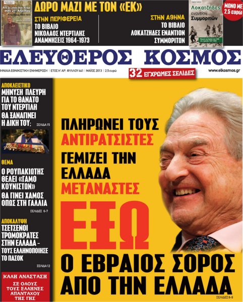 Την Μεγάλη Παρασκευή 3 Μαΐου κυκλοφορεί ο «Ελεύθερος Κόσμος» με ένα μεγάλο αφιέρωμα στον Ουγγροεβραίο επιχειρηματία Σόρος. Ποιος είναι, ποιες είναι οι δραστηριότητές του, ποιες ΜΚΟ ελέγχει και τι θέλει να πετύχει με αυτές στην πατρίδα μας.