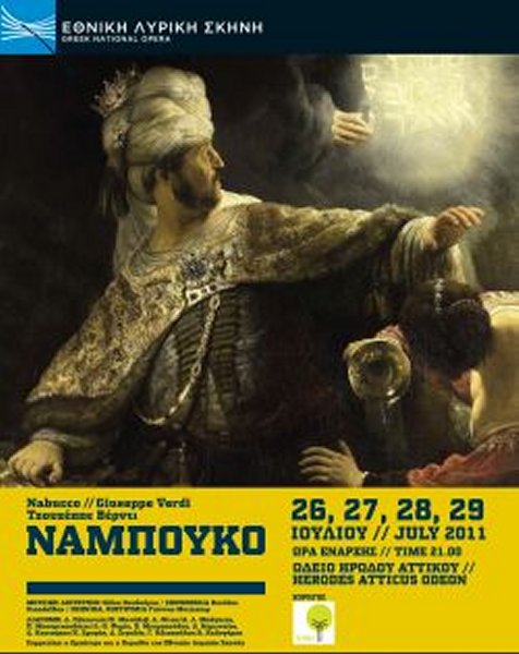 Με τέσσερεις παραστάσεις του «Ναμπούκο» του Βέρντι στο Ηρώδειο κορυφώνει τις καλοκαιρινές τις εκδηλώσεις της η Εθνική Λυρική Σκηνή στις 26, 27, 28 και 29 Ιουλίου. Μια μεγαλειώδη όπερα που συμπεριλαμβάνει το «Va pensiero» (Πέτα σκέψη μου), τον ανεπίσημο ύμνο του Ριζορτζιμέντο, του εθνικιστικού κινήματος για την ενοποίηση της Ιταλίας, της οποίας τα 150 χρόνια γιορτάζονται φέτος.