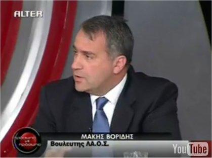 Ο Μάκης Βορίδης μιλάει σε τηλεοπτική εκπομπή για την οικονομική κρίση, την ανυπαρξία σχεδίου αντιμετώπισής της από την κυβέρνηση και την μείωση των κρατικών εσόδων λόγω της κατάρρευσης του εισπρακτικού μηχανισμού. Τέλος προτείνει μέτρα για την δραστική μείωση των δημοσίων δαπανών και το νοικοκύρεμα στον δημόσιο τομέα.