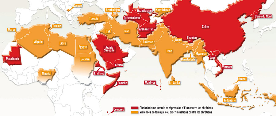 Ισλαμικά και σοσιαλιστικά κράτη έχουν τα πρωτεία σε αυτές τις διώξεις εναντίον των χριστιανών. Την πρώτη θέση στις διώξεις καταλαμβάνει η Βόρειος Κορέα - αγαπημένο κράτος του ΚΚΕ - και την δεύτερη θέση η ισλαμική θεοκρατία του Ιράν - αγαπημένο κράτος του ΣΥΡΙΖΑ. Ακολουθούν διάφορα άλλα κράτη, όπως η Σαουδική Αραβία, Υεμένη, Πακιστάν, Αίγυπτος, Κίνα και Βιετνάμ.