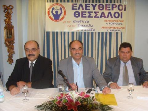 Την Τετάρτη 6 Οκτωβρίου έγινε η παρουσίαση των υποψηφίων της Καρδίτσας του συνδυασμού «Ελεύθεροι Θεσσαλοί» στους εκπροσώπους των ΜΜΕ από τον επικεφαλής του συνδυασμού κ. Ροντούλη.