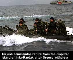 Το ουσιαστικότερο όμως ερώτημα είναι τι έκαναν σ’ αυτά τα 7 χρόνια οι ελληνικές κυβερνήσεις με πρωθυπουργό τον κ. Σημίτη και Υπουργούς Εξωτερικών μέχρι το 1999 τον κ. Πάγκαλο και σήμερα τον Γιωργάκη Παπανδρέου. Μήπως επανασχεδίασαν την εξωτερική μας πολιτική έναντι της Τουρκίας, έτσι ώστε να ανακτήσουμε την κυριαρχία μας στα Ίμια, αλλά και στις γκρίζες ζώνες που δημιουργήθηκαν έκτοτε στο Αιγαίο;