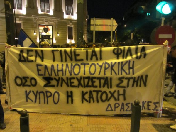 Με αφορμή την επίσκεψη του υπουργού Εξωτερικών της Τουρκίας Αχμέτ Νταβούτογλου στην Αθήνα, πραγματοποιήθηκε την Τετάρτη 10 Οκτωβρίου συγκέντρωση διαμαρτυρίας από 300 πατριώτες ακτιβιστές στην οδό Βασιλίσσης Σοφίας και Ρηγίλλης μπροστά από το μνημείο των Ιμίων. Στην εκδήλωση συμμετείχαν το Δράσις-ΚΕΣ, η Εθνικιστική Κίνηση "Όσοι Ζωντανοί", οι Βετεράνοι Κύπρου '74, ο Σύλλογος Οικογενειών Αγνοουμένων, το Εθνικό Μέτωπο και η Α.Ε.Φ. "Ναπολέων Ζέρβας".