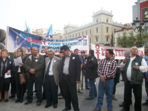 Παρουσία πλήθους κόσμου, η Ηλέκτρα Κίκη, μέλος της Συντονιστικής Επιτροπής, κήρυξε την έναρξη της εκδήλωσης, διαβάζοντας το υπόμνημα που αργότερα θα επιδίδετο στον Πρόεδρο της Βουλής Ευάγγελο Μεϊμαράκη, στο οποίο τονιζόταν η άδικη και κατά παράβαση του Διεθνούς Δικαίου περικοπή των συντάξεων και οι καταστροφικές συνέπειες που θα ακολουθήσουν και ζητούσε από Κυβέρνηση και Βουλή την κατάργηση της περικοπής αυτής.