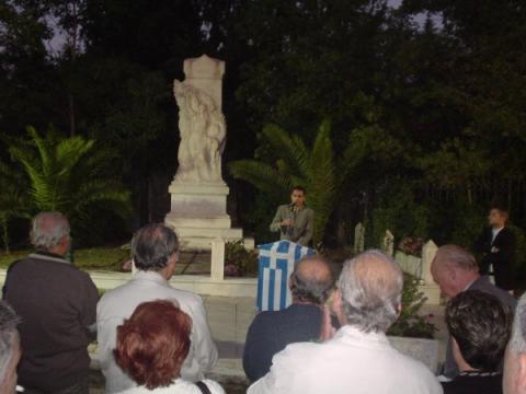 Στεφάνια κατέθεσαν οι Λεωνίδας Γεωργιάδης (Εκδόσεις Γεωργιάδη και Ελληνική Αγωγή), η Νεολαία του Λαϊκού Ορθοδόξου Συναγερμού, ο Σωκράτης Ψαρράς (Πατριωτικός Σύλλογος «Θερμοπύλες») και για τις Εκδόσεις Πελασγός ο Ιωάννης Γιαννάκενας. Την εκδήλωση, μεταξύ άλλων, τίμησαν με την παρουσία τους, το μέλος της Επιτροπής Εκλογικού Αγώνα του ΛΑ.Ο.Σ. Θεοδόσης Αθανασάς, οι τομεάρχες του ΛΑ.Ο.Σ Παναγιώτης Αποστόλου και Τάσος Διακογεωργίου, οι συγγραφείς Αντ.Αντωνάκος και Ελίνα Μαστέλλου-Γιαννάκενα, ο γνωστός δικηγόρος Φιλοκλής Ασημάκης και πλήθος κόσμου. Η εκδήλωση έκλεισε όπως πάντα με τον Εθνικό Ύμνο.