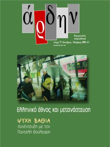 Σοβαρό προβληματισμό πρέπει να προκάλεσε στον κάθε καλόπιστο αναγνώστη το πρόσφατο αφιέρωμα του «Άρδην» για το μεταναστευτικό πρόβλημα της χώρας (τ. 77, Οκτώβριος - Νοέμβριος 2009). Και αυτό γιατί, ενώ το περιοδικό επισημαίνει σωστά τις παραμέτρους του προβλήματος, οι λύσεις που προτείνει αποτελούν, στην καλύτερη περίπτωση, ημίμετρα. Ενδεικτική της αντίφασης που επικρατεί στο συγκεκριμένο αφιέρωμα είναι το γεγονός ότι στην ουσία το «Άρδην» καταλήγει να προτείνει αυτό που το ίδιο καταδικάζει!
