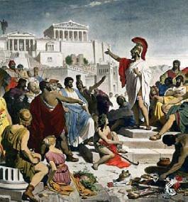 Είστε οι πρώτοι και καλύτεροι στο να γοητεύεστε με καινούρια σχήματα λόγου και στο να αντιδράτε σε δοκιμασμένα επιχειρήματα. Είστε δούλοι κάθε παραδοξολογίας και περιφρονείτε καθετί το συνηθισμένο. Θα έλεγε κανείς ότι είστε σε αναζήτηση ενός άλλου κόσμου από εκείνον στον οποίον ζούμε και ότι δεν μπορείτε να κρίνετε σύμφωνα με την πραγματικότητα. Σας παρασύρει η ευχαρίστηση που προκαλούν τα ωραία λόγια και μοιάζετε περισσότερο με ανθρώπους που παρακολουθούν μια συζήτηση σοφιστών, παρά με πολίτες που συσκέπτονται για τα ζητήματα της πολιτείας». Μας θυμίζει μήπως κάτι;