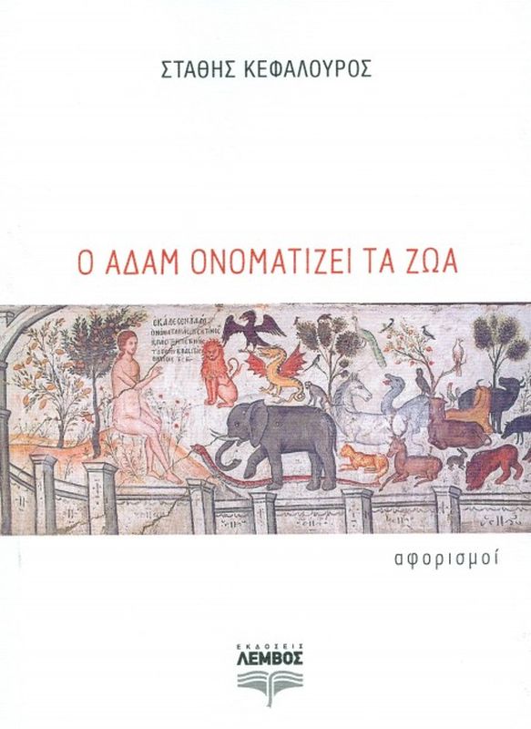 Είναι πολύ συγκεκριμένος ο λόγος για αυτό τον τίτλο. Μελετούσα δύο μεγάλα λευκώματα της Ελληνικής Εκδοτικής, νομίζω, για τις βυζαντινές τοιχογραφίες και τα βυζαντινά ψηφιδωτά. Πρώτα ξεκίνησα με τα ψηφιδωτά και μετά με τις τοιχογραφίες και εντυπωσιάστηκα από την τοιχογραφία με τον Αδάμ που ονοματίζει τα ζώα στα Μετέωρα. Τώρα, αργότερα, εκτός από τον ωραίο τίτλο, κατάλαβα ότι ταιριάζει με τον τίτλο του βιβλίου, γιατί όλοι οι αφορισμοί, το είδος αυτό γραφής είναι μία οιονεί ονοματολογία, δίνεις όνομα στα πράγματα, ορίζεις τα πράγματα, άρα ταιριάζει, ακούγεται και ωραία, είναι εύηχο, παραπέμπει. Λίγο αργότερα, αφού έκανα όλες αυτές τις σκέψεις και έδεσε ο τίτλος, έμαθα και για το τραγούδι του Bob Dylan (εννοεί το «Man gave names to all the animals»).
