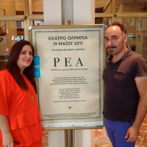 Ακριβώς. Η «Ρέα» του Σαμάρα ήταν η πρώτη παράσταση που άνοιξε το Θέατρο Ολύμπια. Να πούμε για εκείνη την παράσταση ότι ο πρώτος γενικός διευθυντής της Λυρικής Σκηνής ήταν ο Μανώλης Καλομοίρης και αυτός επέλεξε να παιχθεί η «Ρέα» ως το εναρκτήριο έργο του Θεάτρου Ολύμπια. Την ορχήστρα τότε είχε διευθύνει ο Αντίοχος Ευαγγελάτος, πατέρας του Σπύρου Ευαγγελάτου. Πρωταγωνιστές ήταν η Μιρέϊγ Φλερύ, ο Νίκος Γλυνός και ο Τίτος Ξηρέλλης. Είναι πολύ συγκινητικό ότι θα κλείσουμε όπως ξεκινήσαμε.