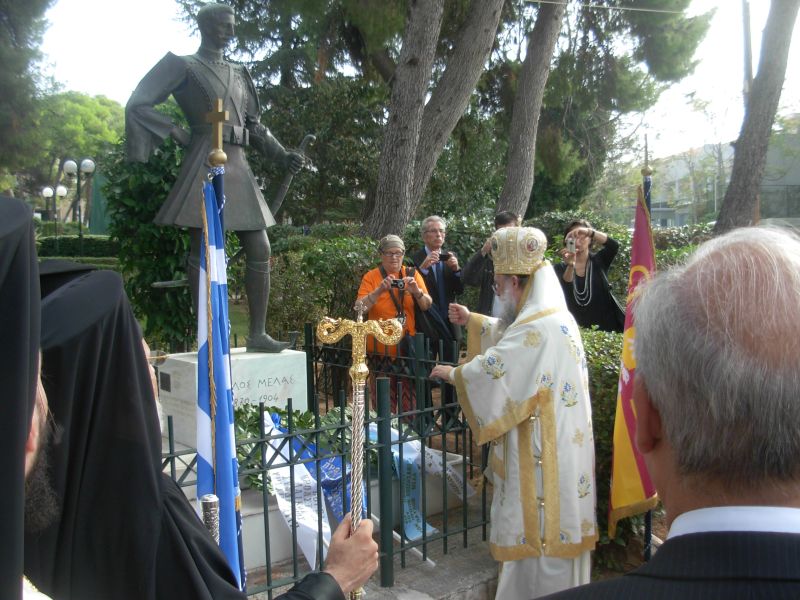 Στην συνέχεια ακολούθησε κατάθεση στεφάνου από τον μητροπολίτη Κύριλλο, τα μέλη του σωματείου «Καπετάν Μίκης Ζέζας», και τον δήμαρχο Κηφισιάς κ. Θωμάκο στον ανδριάντα του ήρωα, που βρίσκεται στην πλατεία Κεφαλαρίου της Κηφισιάς. Ο σεβασμιότατος μητροπολίτης Κηφισιάς, Αμαρουσίου και Ωρωπού Κύριλλος δήλωσε: «Σήμερα κάναμε την αρχή σε αυτό που έπρεπε να είχε κάνει εδώ και χρόνια η πολιτεία και να τιμά έναν τέτοιο ήρωα, εδώ στην Κηφισιά όπου καταρρέει η οικία του. Κάθε χρόνο από εδώ και πέρα, την Κυριακή μετά τις 13 Οκτωβρίου που είναι και η επέτειος, θα πραγματοποιείται επίσημο μνημόσυνο για τον ήρωα Παύλο Μελά». Στην προσπάθεια αυτή έχει συστρατευθεί η δημοτική αρχή του κ. Θωμάκου.