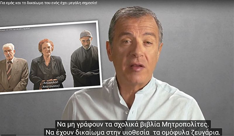 Αν δεν το ξέρατε ότι η επιτομή της προόδου στην Ελλάδα είναι ο Σταύρος Θεοδωράκης, δεν πειράζει. «Αγωνιζόμαστε για μια κοινωνία ελευθερίας. Να μη γράφουν τα σχολικά βιβλία* μητροπολίτες. Να έχουν δικαίωμα στην υιοθεσία τα ομόφυλα ζευγάρια».