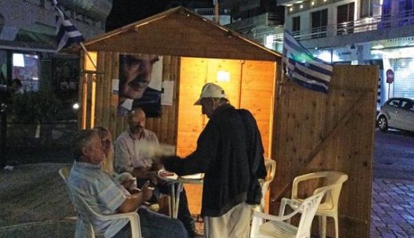 Μόνο έτσι γίνονται τα «θαύματα». Να τα τα νοβοπάνια, να τες κι οι πλαστικές καρέκλες, τσάκω και τα φυλλάδια. Πάρε καφεδάκι, άραξε και περίμενε τον πρώτο κοκοβιό να περάσει. Αν τσιμπήσει, έχει καλώς. Αν όχι, δεν πειράζει, θα περάσει άλλος. Α, πού ‘σαι; Βάλε και καμιά σημαία. Ξέρεις, μωρέ, γαλανόλευκη. Αυτή του κράτους του ελληνικού. Μην διαλέξεις τίποτα ακριβές. Δεν έχει λεφτά η τοπική. Να πάρεις ακρυλικές, τέτοιες, made in China. Πώς μπαίνει; Τι θα πει πώς μπαίνει; Βάλ’ την όπως να ‘ναι. Αρκεί να φαίνεται.
