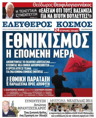 Ο «Ελεύθερος Κόσμος» κυκλοφορεί με κεντρικό τίτλο «Εθνικισμός, η επόμενη ημέρα» και διαφορετική ανάγνωση και ανάλυση.