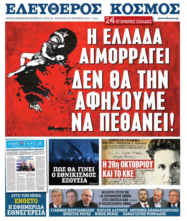«Ελεύθερος Κόσμος», η εφημερίδα των Ελλήνων Εθνικιστών. Ζητήστε στα περίπτερα όλης της χώρας.