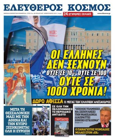 Διαβάστε σε αυτό το φύλλο: «Εμείς θα σώσουμε την Μακεδονία» γράφει ο Μιχάλης Τάντης. «Οι Έλληνες δεν ξεχνούν ούτε σε 10, ούτε σε 100, ούτε σε 1000 χρόνια» άρθρο του Πέτρου Μυλωνά. Μετά την Θεσσαλονίκη, μαζί με την Αθήνα και την Κύπρο, ξεσηκώνεται όλη η Ευρώπη με συλλαλητήρια.