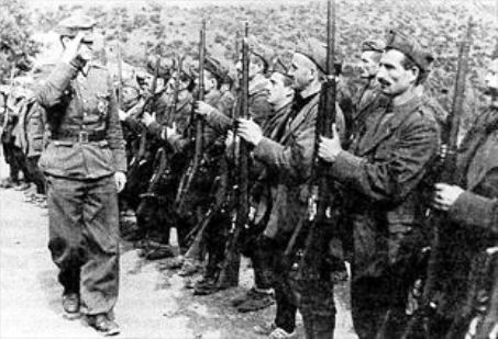 Μονάδα Τσάμηδων παρουσιάζει όπλα σε Γερμανό αξιωματικό κατά την διάρκεια της Κατοχής.