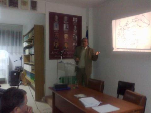 Πραγματοποιήθηκε την Τετάρτη 24 Απριλίου στην αίθουσά μας η ομιλία του δικηγόρου και πολιτικού επιστήμονος, αλλά και πολυγραφότατου συγγραφέα, Αθανασίου Κόρμαλη, με τίτλο "Διδάγματα και συμπεράσματα από την κρίση στο Αιγαίο μας", με την παρουσία πλήθους κόσμου. Όλοι έμειναν καθηλωμένοι στις θέσεις τους, παρά την μεγάλη χρονική διάρκεια της ομιλίας, αφού τα στοιχεία που παρουσίασε ο ομιλητής, αλλά και το πλήθος του οπτικού υλικού που συνόδευε τον λόγο του, αποδείχθηκαν ιδιαιτέρως ενδιαφέροντα.