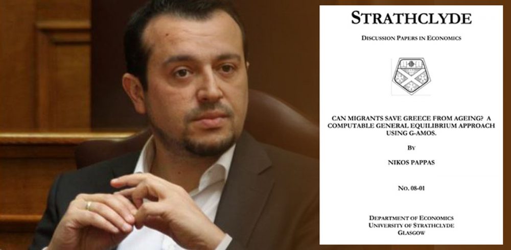 Και συνεχίζει παρακάτω σημειώνοντας: «Σε κάθε περίπτωση, η προφανής συνέπεια σε επίπεδο πολιτικής είναι ότι το επίπεδο της ετήσιας μετανάστευσης είναι πολύ σημαντικό για το δημογραφικό μέλλον της Ελλάδος και ότι τα σημερινά επίπεδα μετανάστευσης δεν είναι αρκετά για να αντιμετωπίσουν τις αρνητικές συνέπειες της γήρανσης (του πληθυσμού). Στην μελέτη μας δεν υπάρχει κανένας διαχωρισμός μεταξύ νόμιμων και παρανόμων μεταναστών. Η ολοκληρωτική νομιμοποίηση των υπαρχόντων ξένων πληθυσμών θα μπορούσε να είναι το πρώτο βήμα προς μια συνεπή και βιώσιμη στρατηγική. Η νομιμοποίηση θα έφερνε αύξηση στα έσοδα της εθνικής ασφάλισης και του φόρου και θα περιόριζε την μεταφορά κεφαλαίων εκτός της χώρας. Μια ενεργητική μεταναστευτική πολιτική ως εκ τούτου είναι απαραίτητη για να σιγουρέψει αρκετές ροές μετανάστευσης». Αυτές ακριβώς είναι οι «θέσεις» του Νίκου Παππά, ως διδακτορικού.