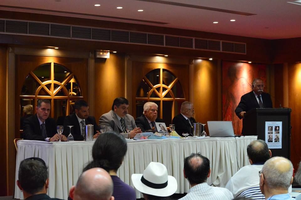 Ο πρώτος ομιλητής, Αριστείδης Δημόπουλος, (πρώην υφυπουργός, πρώην ευρωβουλευτής) είχε και ο ίδιος γράψει παλαιότερα ένα βιβλίο με τίτλο «Από την Επανάσταση στην Κοινοβουλευτική ΕΠΕΝ», το οποίο αποτελεί μία κατάθεση ψυχής και το οποίο εξέδωσαν οι εκδόσεις «Πελασγός» πριν από δύο μήνες, περίπου. Ο κ. Δημόπουλος είπε περιληπτικά τα εξής: «Πριν 18 χρόνια, σαν και σήμερα, (27 Ιουνίου 1999), ο Γεώργιος Παπαδόπουλος «έφυγε», ασυμβίβαστος ως ηγέτης, ωραίος ως Έλλην, υπερήφανος ως αξιωματικός, και πτωχός ως οι ομολογητές της Ορθοδόξου Πίστεώς μας. Και μαζί του, έσβησε και το όραμά του για την δημιουργία μιας πειθαρχημένης, στιβαρής και εύρωστης αστικού τύπου δημοκρατίας στον τόπο.