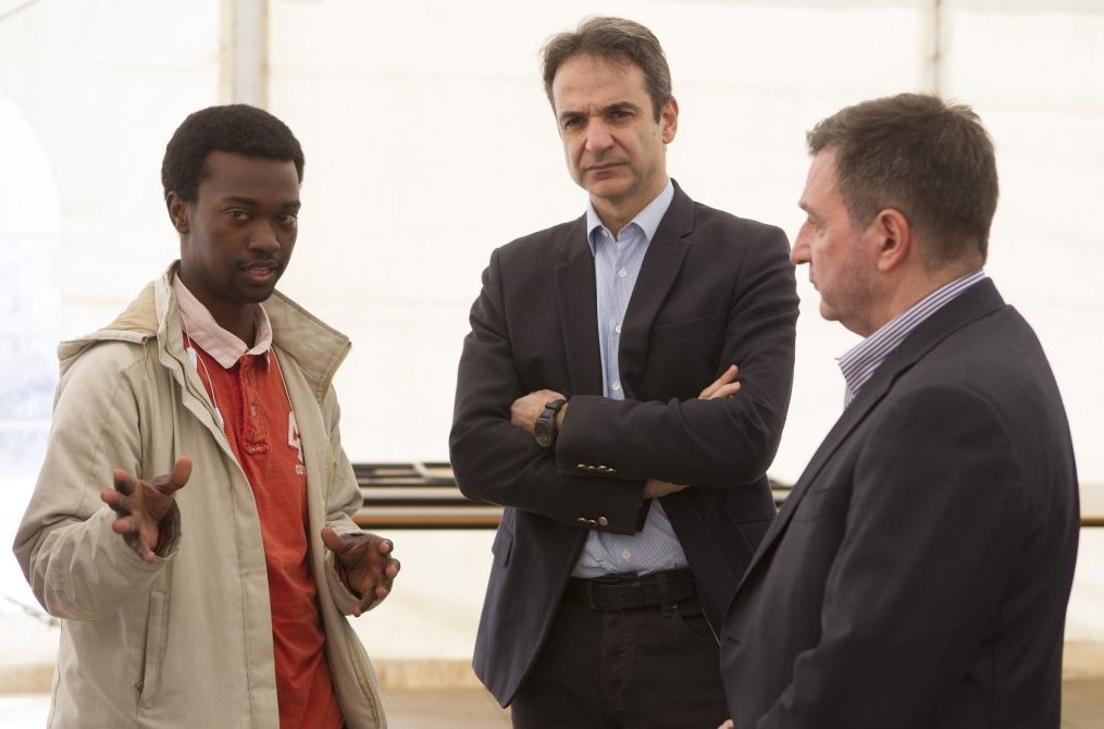 Κυριάκος Μητσοτάκης και Γιώργος Καμίνης στο «κέντρο προσφύγων» στην αθηναϊκή συνοικία του Ελαιώνα.