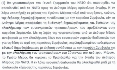 Η αλήθεια είναι πως σύμφωνα με το άρθρο 1 της συμφωνίας της Πρέσπας, παρέχεται δυνατότητα (και όχι η υποχρέωση) στα Σκόπια να διενεργήσουν δημοψήφισμα. Η επιλογή Ζάεφ να το πράξει έδειχνε και τη σιγουριά που είχε για το τελικό αποτέλεσμα, αλλά … ατύχησε! Αν, όμως, στο άρθρο 1 το δημοψήφισμα είναι προαιρετικό, δεν συμβαίνει κάτι τέτοιο στο άρθρο 2 (παρ.4.β.ΙΙ), όπου το αποτέλεσμά του είναι δεσμευτικό για τις περαιτέρω εξελίξεις και κυρίως για τη στάση της ελληνικής πλευράς, η οποία υποχρεούται να προχωρήσει στις σχετικές ενέργειες για την είσοδο των Σκοπίων σε ΕΕ και ΝΑΤΟ, μόνον εφόσον το αποτέλεσμα του δημοψηφίσματος συνάδει με το κείμενο της συμφωνίας.