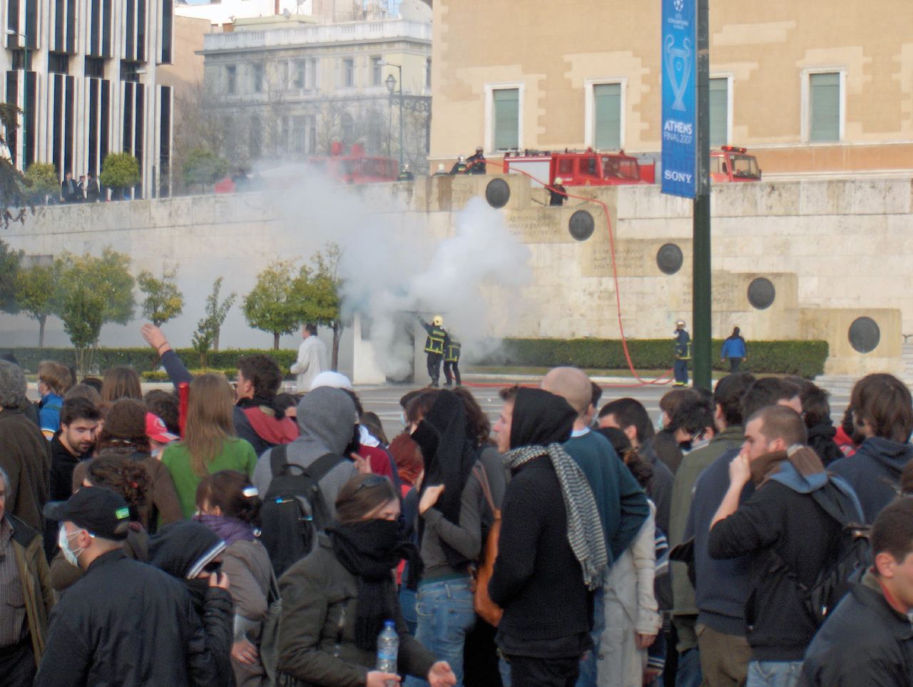Το δημοσιογραφικό κατεστημένο που για να εξασφαλίσει την υψηλή τηλεθέαση στα μονοθεματικά και άθλια τηλεοπτικά δελτία ασχολείται με το αν τα δακρυγόνα και καπνογόνα των Μ.Α.Τ. είναι ληγμένα και όχι με το πολύ πιο σημαντικό γεγονός ότι κάποιοι απλοί πολίτες εξευτελίζουν όχι μόνον την Αστυνομία και το συνταγματικό δικαίωμα του συναθροίζεσθαι, αλλά και τον θεσμό των Ελληνικών Ενόπλων Δυνάμεων, επιτιθέμενοι άμεσα σε στρατιώτες εν ώρα υπηρεσίας, καθώς, φυσικά, και στο πιο όσιο και ιερό μνημείο του Ελληνισμού, το μνημείο του Αγνώστου Στρατιώτου και όλους τους συμβολισμούς που το συνοδεύουν;