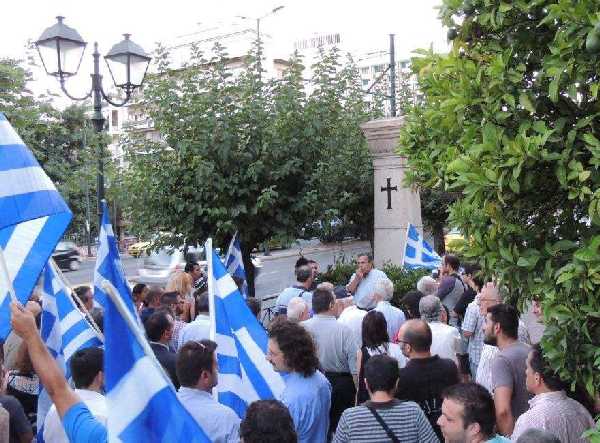 Στην συνέχεια την εκδήλωση χαιρέτησε, εκ μέρους της «Επιτροπής Ενημερώσεως επί των Εθνικών Θεμάτων» ο πρόεδρός της Παναγιώτης Παπαγαρυφάλλου, ο οποίος, μεταξύ των άλλων είπε τα εξής λόγια: «Γνωρίζω καλά, πολύ καλά, ότι είμαστε η μειοψηφία μέσα σε μια πλειοψηφία που «κολυμπά στα σκατά». Σʼ αυτούς τους συνέλληνες απευθύνουμε την έκκληση: Δραπετεύστε από τους πολιτικούς βόθρους και τις εθνοκτόνες εξουσίες. Ελάτε μαζί μας, με τον Ίωνα Δραγούμη, με την πατρίδα και το έθνος, για να χαράξουμε νέους ελπιδοφόρους εθνικούς ορίζοντες. Πρέπει να αισθανόμεθα εθνικά υπερήφανοι γιατί ανήκουμε στους λίγους, γιατί, όπως έλεγε και ο κοινωνικός φιλόσοφος Έριχ Φρόμ: «Αν δεν υπήρχε η μειοψηφία, οι άνθρωποι θα ζούσαν στην εποχή των σπηλαίων» και όπως διακήρυσσε ο Γερμανός διανοητής Γκαίτε: «Η ζωή προχωρεί γιατί υπάρχουν και εκείνοι που της αντιστέκονται». Εμείς, λοιπόν οι λίγοι κηρύσσουμε την Αντίσταση τη Νέα Εθνική Αντίσταση! Αντίσταση κατά της πατριδοκτονίας! Αντίσταση κατά της Εθνοκτονίας, Αντίσταση κατά της χαβουζοποίησης της πολιτικής και εθνικής ζωής. Ελληνίδες και Έλληνες! Αυτό το χώμα είναι δικό τους και δικό μας. Εμείς θα το υπερασπίσουμε. Δεν θα υπερασπιστούμε μόνο το χώμα. Θα υπερασπίσουμε τα βουνά, τις θάλασσες και τα νησιά που θέλουν να ξεπουλήσουν. Θα υπερασπίσουμε την Ακρόπολη, αυτό το αιώνιο σύμβουλο του παγκοσμίου και διαχρονικού πολιτισμού που τόσο πολύ λάτρεψε ο ελληνολάτρης Ίων Δραγούμης. Οφείλουμε να υπερασπιστούμε την εθνική μας παράδοση, γιατί όπως διεκήρυσσε ο Ίων: «Έθνος χωρίς παράδοση δεν υπάρχει». Να, τα άμεσα καθήκοντα των αληθινών πατριωτών, τα οποία περιφρονούν οι ερζάτς προοδευτικοί. Τελειώνοντας, τολμώ να διατυπώσω την άποψη ότι Ίσως η Ελλάδα δεν θα ξέπεφτε στα σημερινά εκφυλιστικά φαινόμενα, αν εδώ στο χώμα που πατάμε δεν κοβόταν το νήμα της Καρποφόρου ζωής του Ίωνος Δραγούμη από τις δολοφονικές σφαίρες των πολιτικών του αντιπάλων».