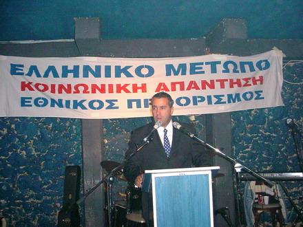 Η κεντρική ομιλία του προέδρου του ΕΛΛΗΝΙΚΟΥ ΜΕΤΩΠΟΥ Μάκη Βορίδη που ακολούθησε, ξεσήκωσε το ακροατήριο, καθώς μετέφερε το κλίμα ενότητας και αγωνιστικής εγρήγορσης, που λίγες ώρες πριν ο λαός της Θεσσαλονίκης είχε εκφράσει με ένα μαζικό συλλαλητήριο κατά των επιβουλέων της Μακεδονίας μας. Ο Μάκης Βορίδης κατήγγειλε την ενδοτική στάση των κυβερνήσεων, τόσο του ΠΑΣΟΚ, όσο και της ΝΔ, που οδήγησε και οδηγεί το Μακεδονικό ζήτημα και όλα τα Εθνικά μας θέματα σε όλο και πιο σοβαρά αδιέξοδα. Τόνισε την ανάγκη ενότητας των Πατριωτικών δυνάμεων, την οποία οι νέες πραγματικότητες που εις βάρος της Πατρίδας και του Λαού διαμορφώνονται, καθιστούν όσο ποτέ αναγκαία.