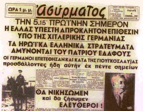 Γραμμή Μεταξά, ώρα 05:30 π.μ., 6 Απριλίου 1941: Οι γερμανικές σιδηρόφρακτες στρατιωτικές δυνάμεις εξαπολύουν επίθεση εναντίον της πατρίδας μας Ελλάδας που ήδη δίνει την μάχη στα βορειοηπειρωτικά βουνά, από τις 28 Οκτωβρίου 1940, ενάντια στην άνανδρη φασιστική επίθεση της Ιταλίας του Μπενίτο Μουσολίνι. Η ναζιστική Γερμανία, με τηλεγράφημα που αποστέλλεται μέσω του τότε Γερμανού πρεσβευτή στην Αθήνα, ζητά από τον τότε Έλληνα Πρωθυπουργό Αλέξανδρο Κορυζή την άνευ όρων παράδοση των ελληνικών εδαφών και την ελεύθερη διέλευση των γερμανικών στρατευμάτων, για να εισπράξει, όπως και η φασιστική Ιταλία την 28η Οκτωβρίου 1940, ένα δεύτερο υπερήφανο ΟΧΙ.
