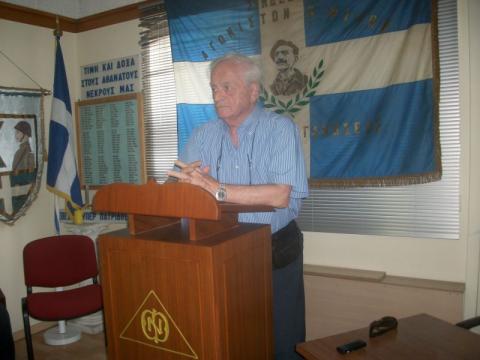 Επόμενος ομιλητής ήταν το μέλος του Δ.Σ. Σπυρίδων Σταυρόπουλος, ο οποίος είπε ότι ο Γρίβας επάξια πήρε τον τίτλο «άξιος της Πατρίδος», γιατί απέκτησε διεθνή φήμη, μνημονεύεται και διαβάζεται ως πρότυπο από όλα τα σύγχρονα εθνικιστικά κινήματα. Ο ίδιος έτυχε να γνωρίσει τον Γρίβα, όταν αυτός επισκέφθηκε την Ηγουμενίτσα, και στον κύκλο των προκρίτων που μίλησε, ήταν και ο πατέρας του, ως πρόεδρος του Δικηγορικού Συλλόγου. Η «Χ» αναγνωρίστηκε ως μία από τις αντιστασιακές οργανώσεις, με Βασιλικό Διάταγμα, τον Μάρτιο 1950. Ο μεγάλος αγωνιστής, ο καθηγητής της Παντείου Δημήτρης Βεζανής, ο οποίος είχε απευθείας σχέση με τον Γρίβα, προσπαθούσε να βρει φοιτητές, με το πρόσχημα ενός εθνικού συνδέσμου, με απώτερο σκοπό να συγκροτηθεί η ΕΟΚΑ.