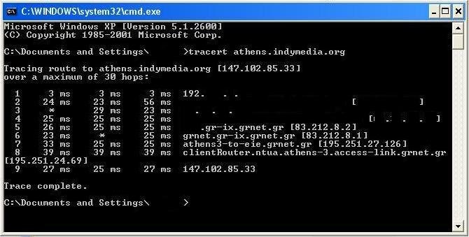 To αποτέλεσμα μίας σύντομης έρευνας δείχνει σαφώς ότι τα δεδομένα που λαμβάνει κανείς από την ιστοσελίδα “athens.indymedia.org” ξεκινούν από κάποιο μηχάνημα με IP 147.102.85.33 (όπου IP είναι κατά κάποιον τρόπο ένας μοναδικός αριθμός μέσα σ' ένα δίκτυο που αποδίδεται σε μία συσκευή που συνδέεται με αυτό - φανταστείτε ότι το δίκτυο είναι το τηλεφωνικό και ότι σε κάθε συσκευή που συνδέεται δίδεται ένας αριθμός για να μπορεί κανείς να την καλέσει). Ο αριθμός αυτός ανήκει στο ΕΜΠ. Από το μηχάνημα λοιπόν αυτό τα δεδομένα διανέμονται μέσω του κατανεμητή του Πολυτεχνείου στο ΕΔΕΤ και από εκεί καταλήγουν στον υπολογιστή μας μέσω του παρόχου μας.